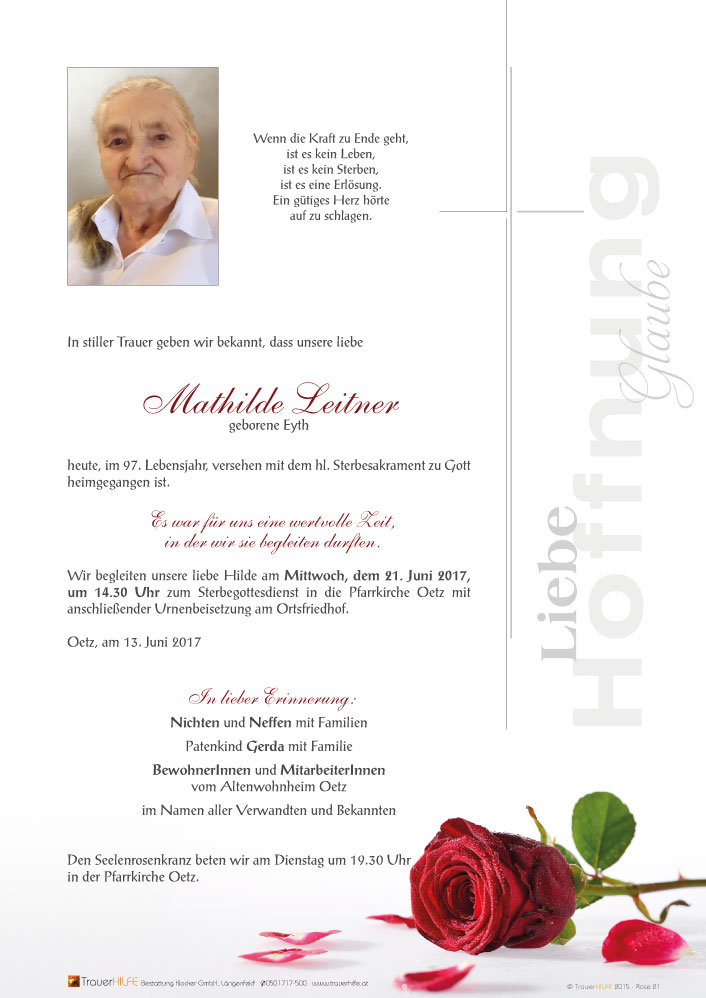 Was uns bleibt , sind Liebe, Dank und schöne Erinnerungen an die Zeit mit Hilda.