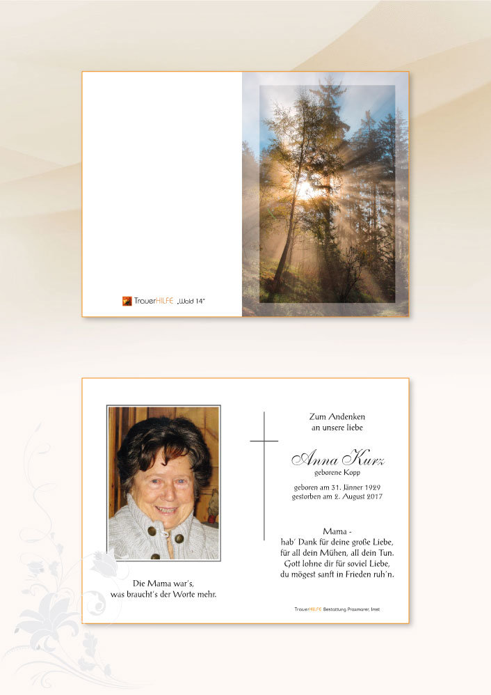 Bestattung wurde durchgeführt von: Daniel Klocker Bestattung Praxmarer GmbH Thomas Walch Str. 4 6460 - Imst Tel.: 05412 64250 zum Bestatter