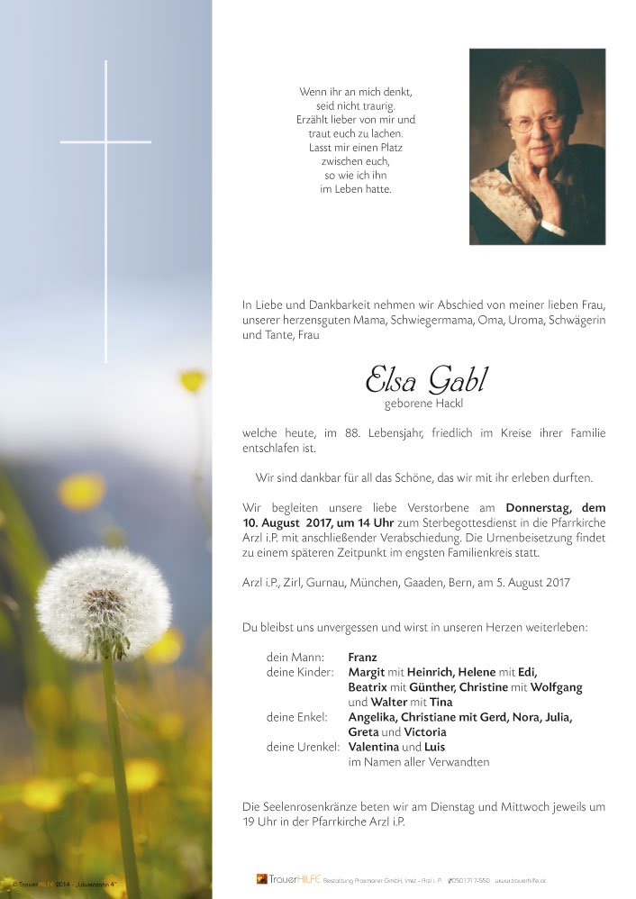 Friedhof Arzl im Pitztal, † 05.08.2017 (87 Jahre)
