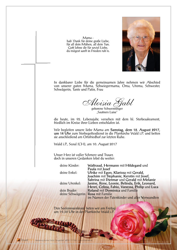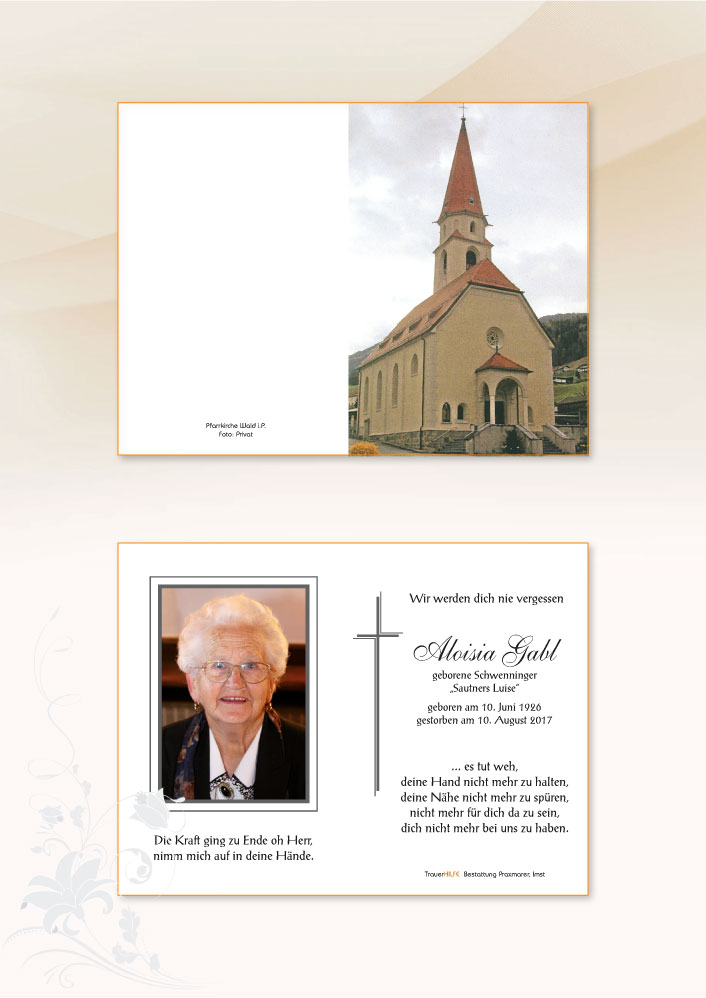 Friedhof Wald im Pitztal, † 10.08.2017 (91 Jahre)