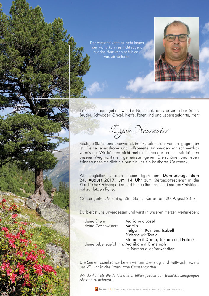Die Nachricht vom Heimgang von Egon hat mich sehr betroffen gemacht. Haben wir doch erst bei einem von euren Spaziergängen vor unserem Haus einen netten "Ratscher" gemacht....