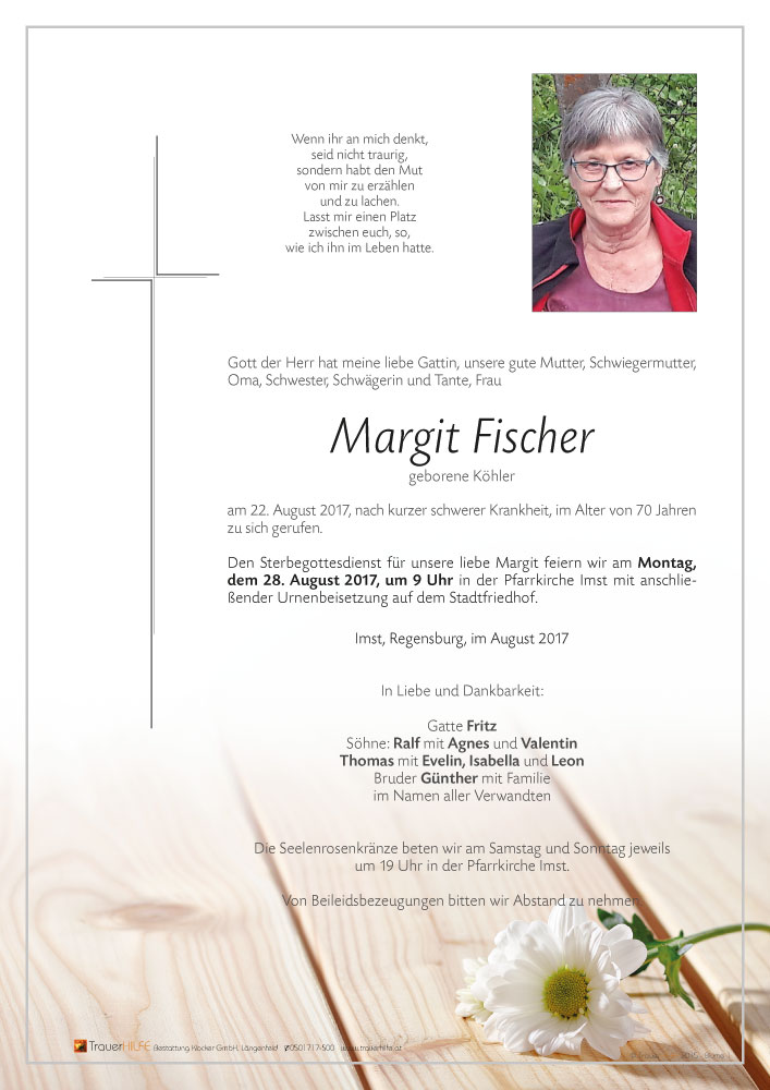 Lieber Fritz, wir möchten Dir und Deiner Familie unsere bewegte Anteilnahme am Heimgang Deiner Margit zum Ausdruck bringen.