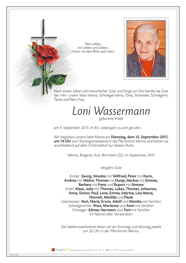 Liebe Trauerfamilie, zum Heimgang eurer lieben Mama und Oma übermitteln wir euch unsere Anteilnahme