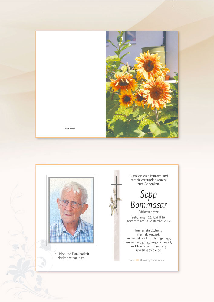 Mein Aufrichtiges Beileid zum Heimgang von deinem lieben Mann, eurem lieben Papa und Opa. Ich habe mich jedesmal gefreut wenn ich zum Sepp heim kommen konnte, weil er so eine liebenswerte, humorvolle Art hatte, dass das arbeiten für mich immer ein Vergnügen war.