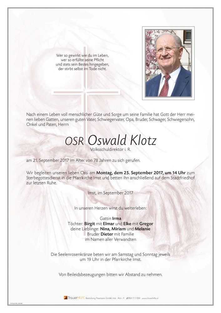 Aufrichtige Anteilnahme entbietet Jürgen Neumayr, ein ehemaliger Schüler und Nachbar22.09.2017 16:44 - Jürgen Neumayr