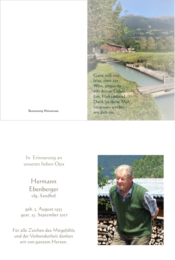 Bestattung wurde durchgeführt von: Markus Ertl Bestattung Weissensee Neusach 26 9762 - Weißensee Tel.: 04713 22 29 zum Bestatter