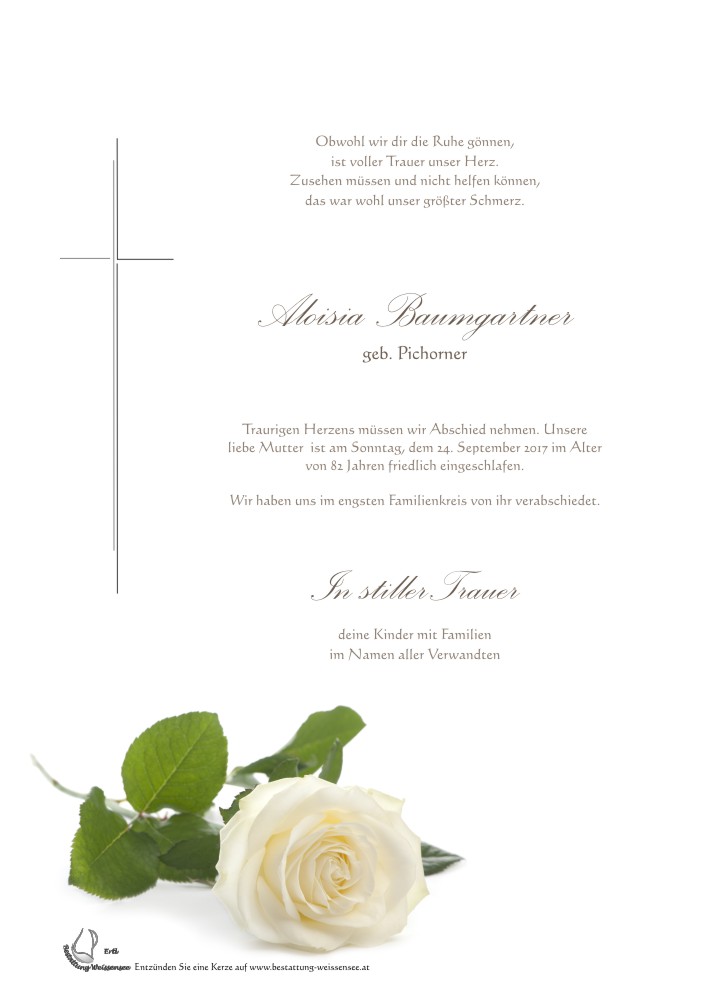 Neue Kerze für Aloisia Baumgartner entzünden.