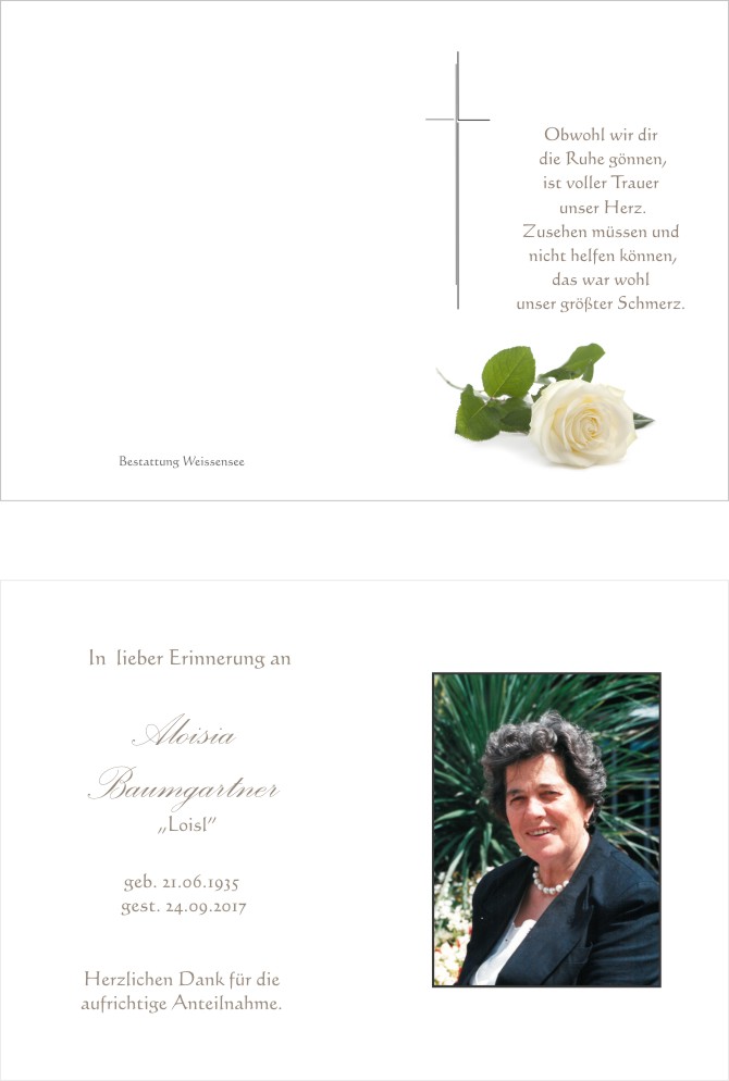 Bestattung wurde durchgeführt von: Markus Ertl Bestattung Weissensee Neusach 26 9762 - Weißensee Tel.: 04713 22 29 zum Bestatter