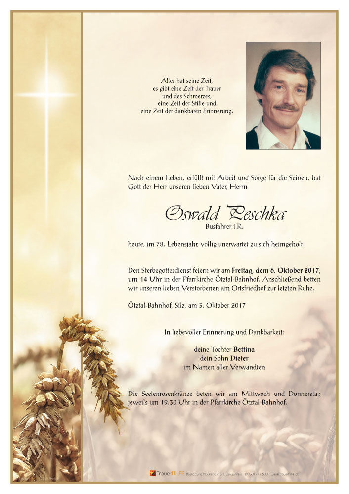 Liebe Bettina, lieber Dieter. Nun ist euer Papa zu seiner Helga heimgekehrt. Mit Ossi verbinden uns viele, schöne Erinnerungen an unterhaltsame Stunden. Viel Kraft in der Zeit des Abschiednehmens.