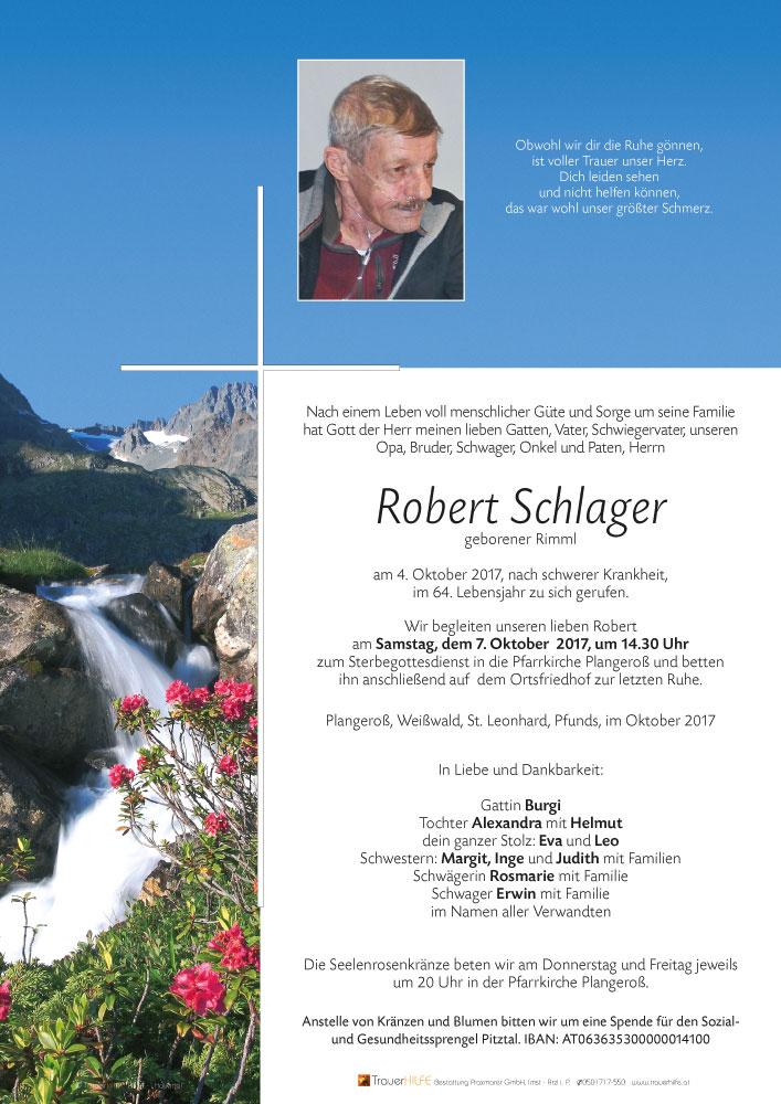 Aufrichtige Anteilnahme am Tod vom Robert entbieten euch Wachter Benny mit Lisi, Lukas und Emma !