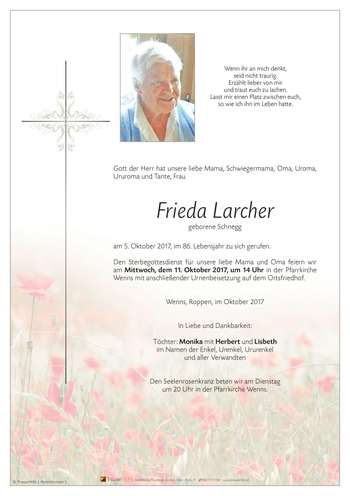 Aufrichtige Anteilnahme entbietet Euch Marlene06.10.2017 22:07 - Marlene Füruter
