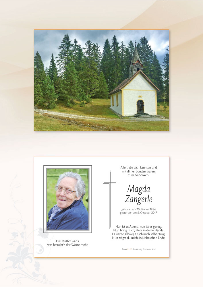 Du spürst es dann sie ist nicht weit Sie ging voraus in die Ewigkeit.