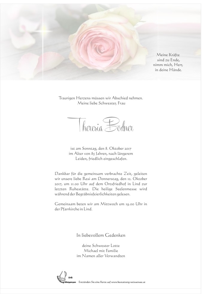 Bestattung wurde durchgeführt von: Markus Ertl Bestattung Weissensee Neusach 26 9762 - Weißensee Tel.: 04713 22 29 zum Bestatter