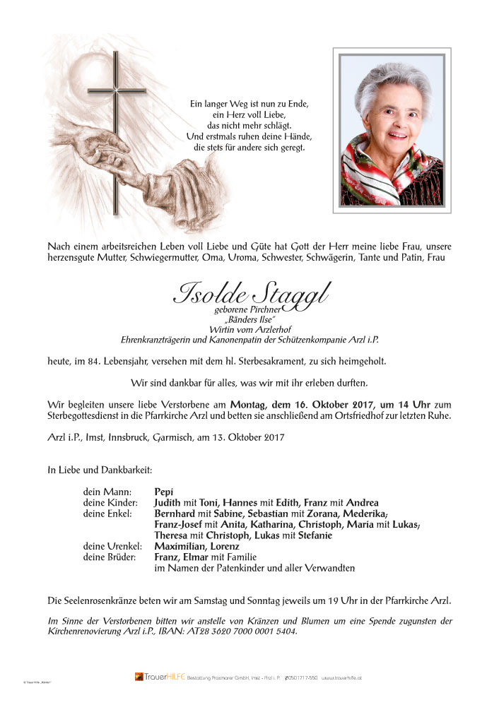 und am Ende steht nicht Verlust, sondern ewige Vollendung des Lebens.16.10.2017 18:06 - Christine und Helmut Tschuggnall