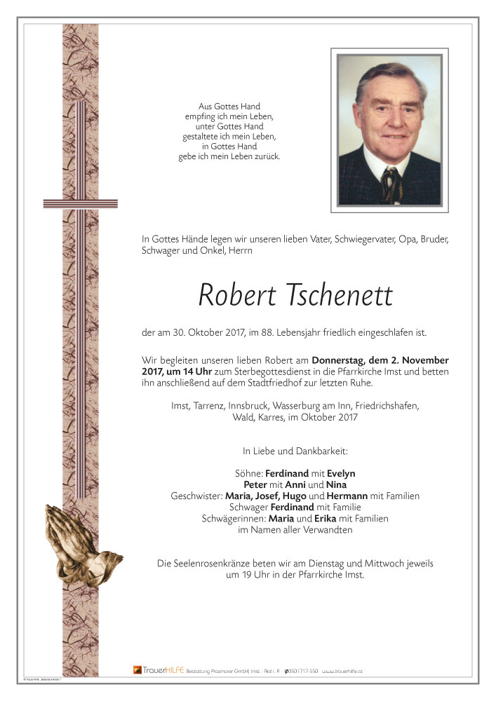 Aufrichtiges Beileid am Tode Eures lieben Vaters entbietet Wolfgang Pfandler mit Familie31.10.2017 16:55 - Wolfgang Pfandler, Landeck