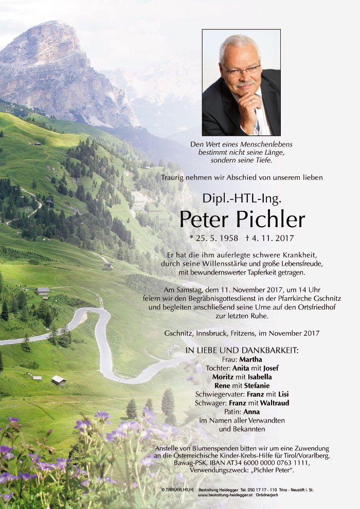 Aufrichtige Anteilnahme entbietet Peter Spielmann mit Familie06.11.2017 10:58 - Fam. Peter Spielmann, Ehrwald