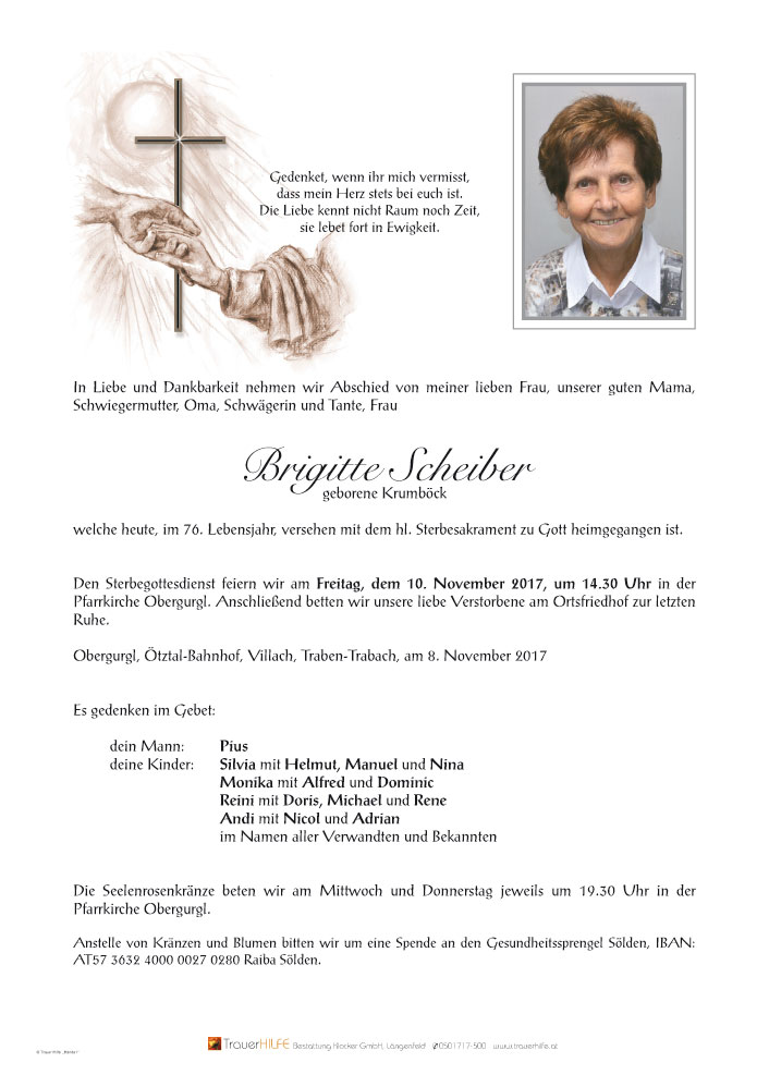 Neue Kerze für Brigitte Scheiber entzünden.