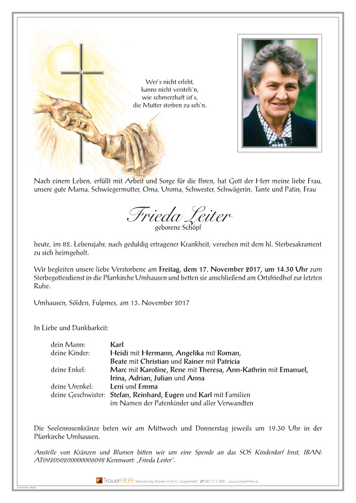 Jetzt gönnen wir Ihr die Ruhe, auf der anderen Seite vom irdischen Leben.14.11.2017 16:01 - Praxmarer Hermann