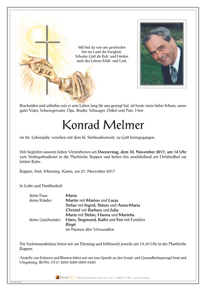 Aufrichtige Anteilnahme zum Ableben von Konrad entbietet