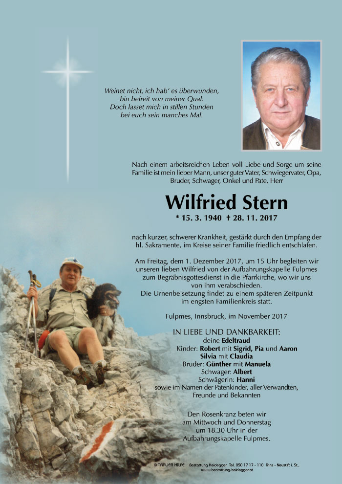 Friedhof Fulpmes, † 28.11.2017 (77 Jahre)
