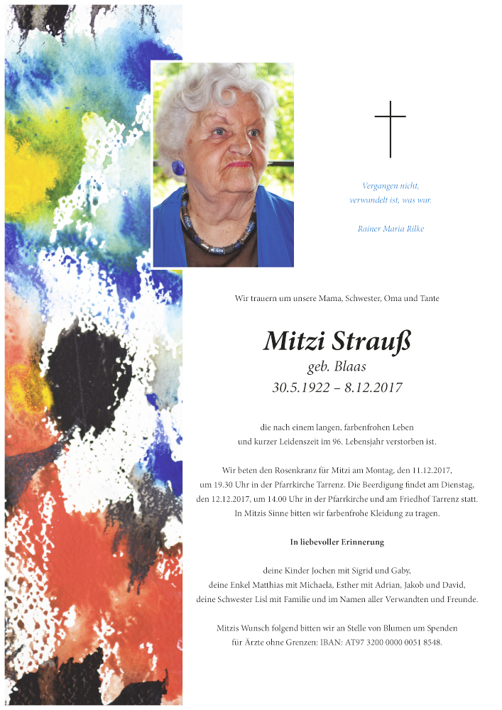 Neue Kerze für Mitzi Strauß entzünden.