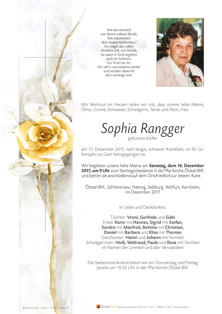 Zum Heimgang eurer lieben Mama,Oma und Uroma möchten wir euch unsere herzliche Anteilnahme übermitteln.