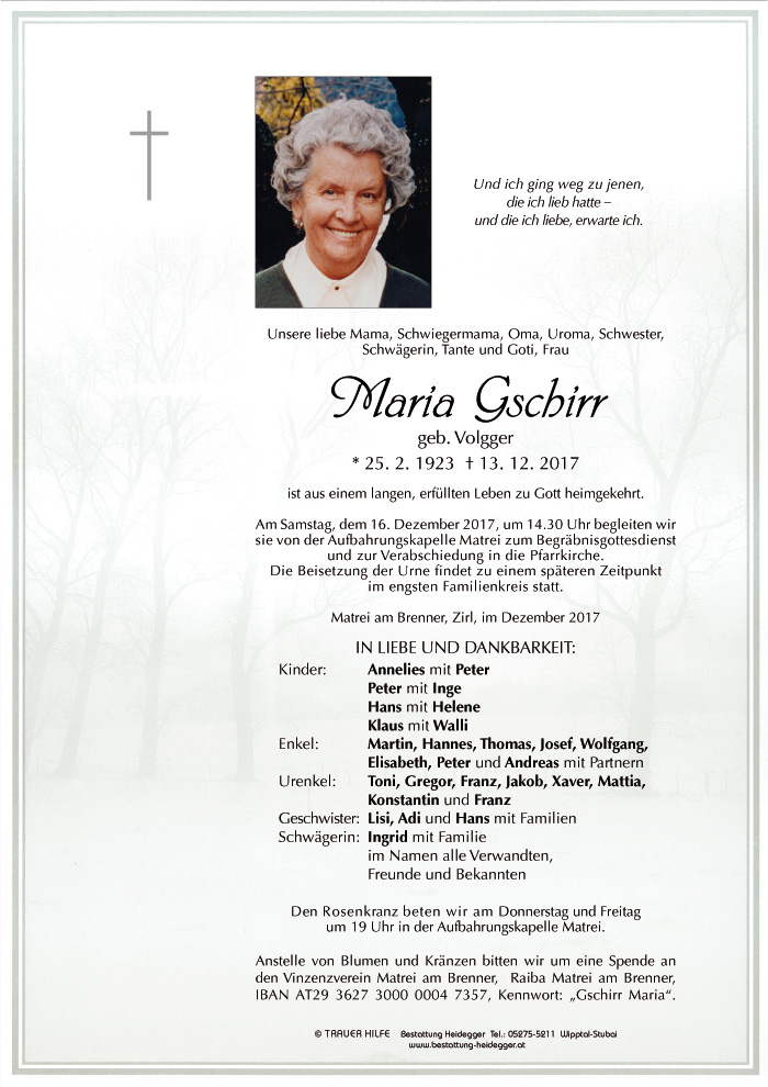 Friedhof Matrei am Brenner, † 13.12.2017 (94 Jahre)