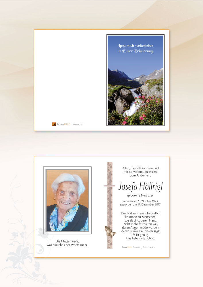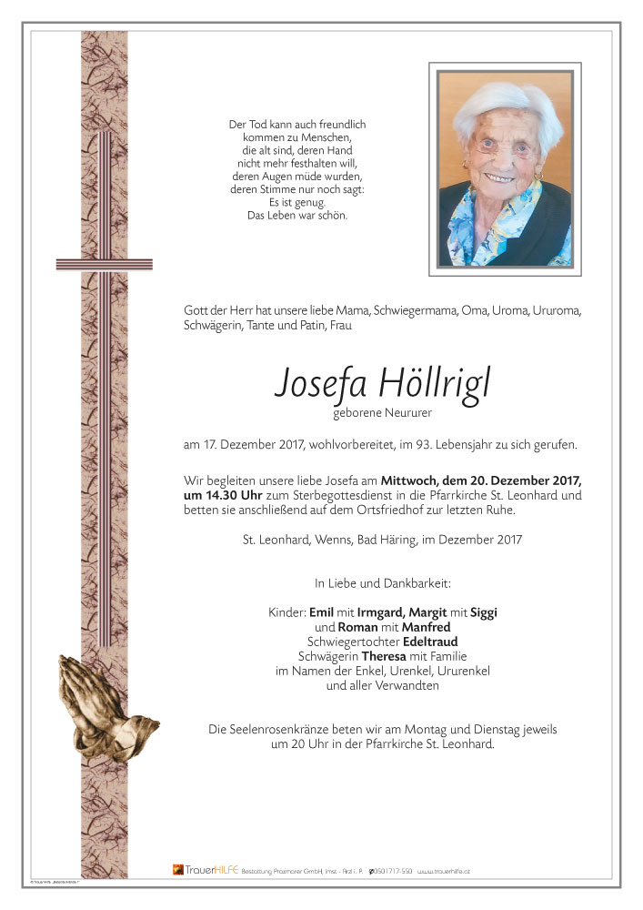 Zum Tode von Josefa unser aufrichtiges Beileid und viel Kraft in dieser schweren Zeit.