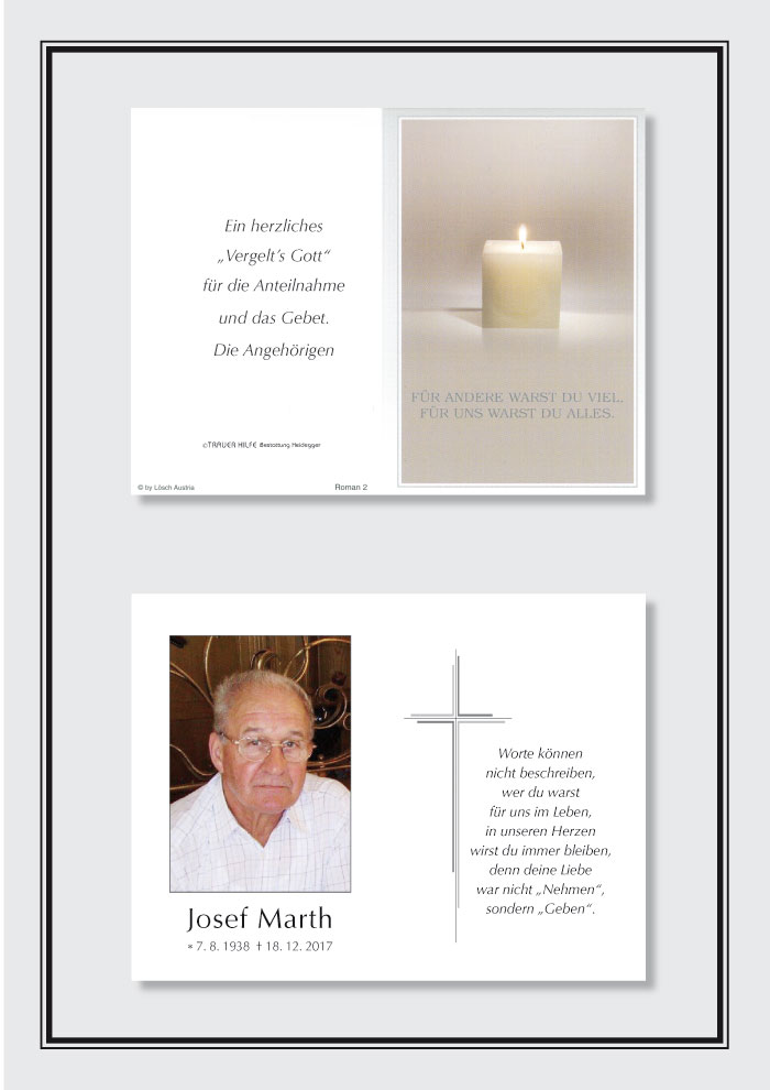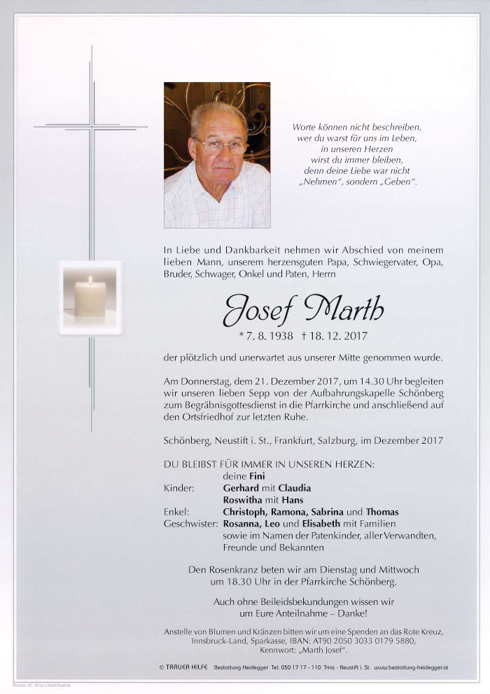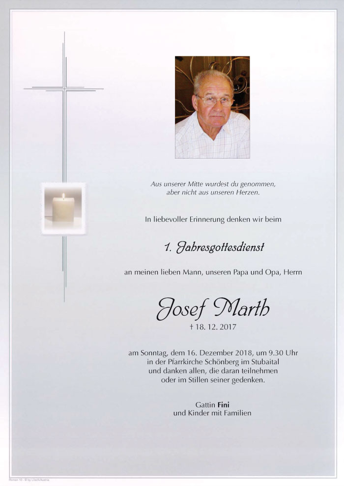Neue Kerze für Josef Marth entzünden.