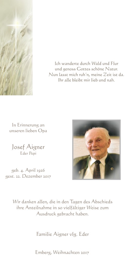Friedhof Berg, † 22.12.2017 (91 Jahre)
