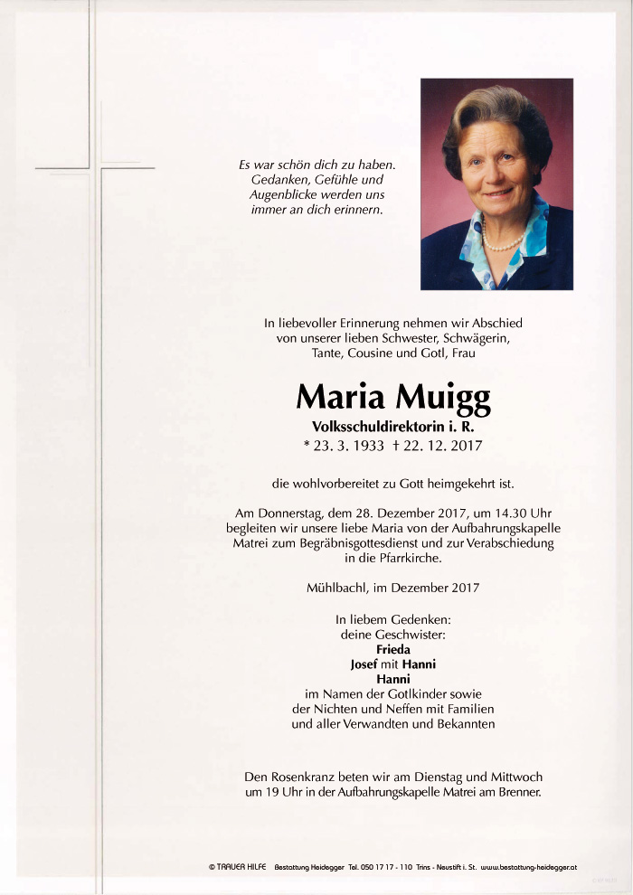 Friedhof Matrei am Brenner, † 22.12.2017 (84 Jahre)