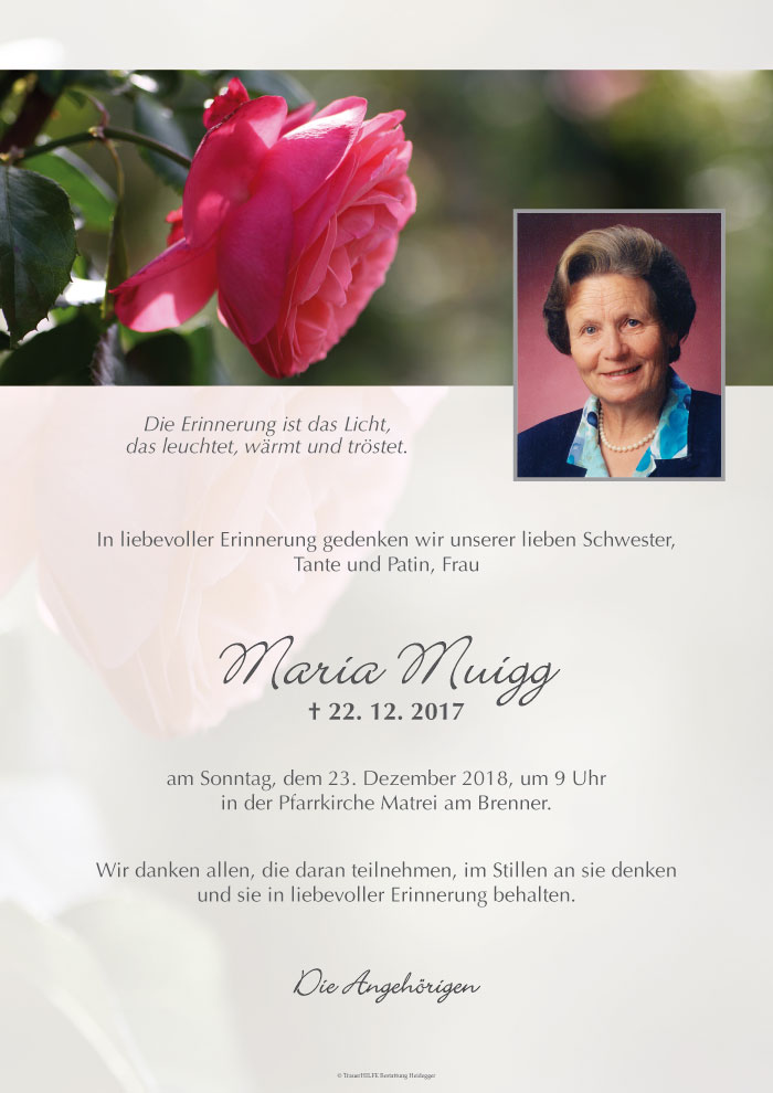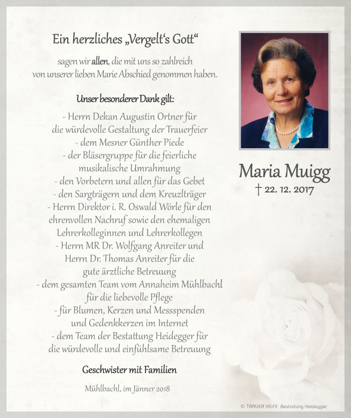 Bestattung wurde durchgeführt von: Karl Neurauter Karl Neurauter Bestattung Heidegger Brennerstraße 69 6150 - Steinach am Brenner Tel.: 05275 5211 zum Bestatter