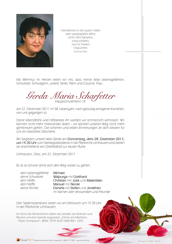 Liebe Gerda, Liebe Trauerfamilie..