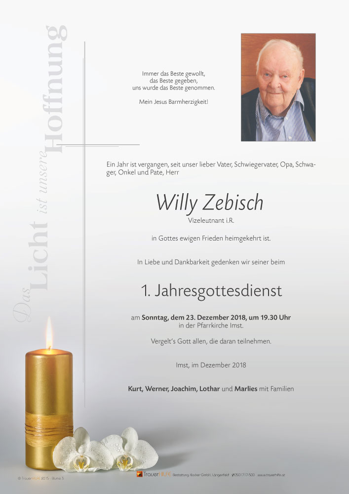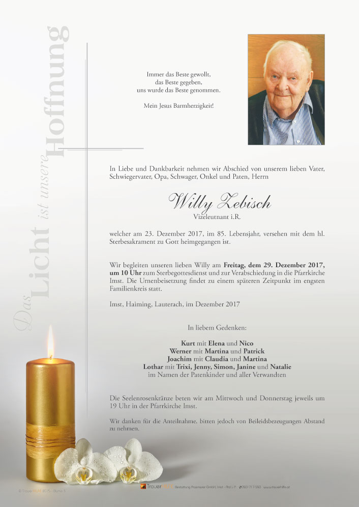 Aufrichtige Anteilnahme anlässlich des Heimganges Eures lieben Willys!