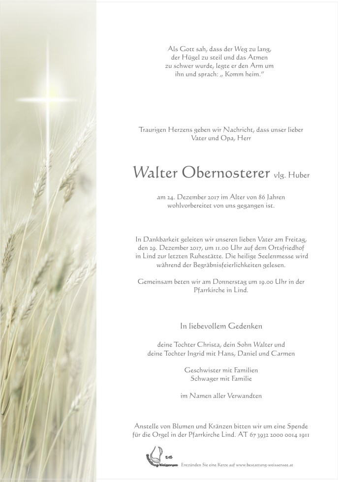 Friedhof Lind im Drautal, † 24.12.2017 (86 Jahre)