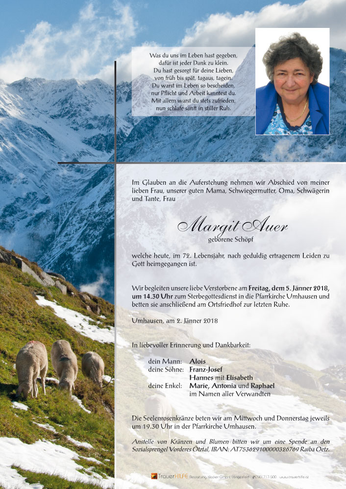 Es tut mir sehr leid um Margit, deine Frau und eure Mama, ich habe Sie sehr gemocht !!!06.01.2018 22:12 - Fischer Gerhard