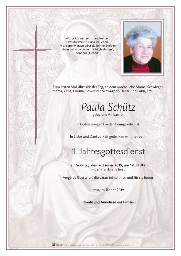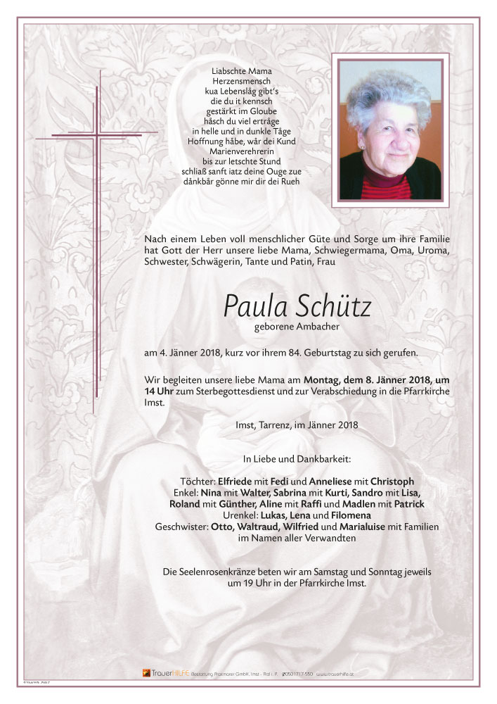 Zum Tod Eurer Lieben Mutter unsere Aufrichtige Anteilnahme wir werden Paula in lieber Erinnerung behalten. Viel Kraft für die schwere Zeit.