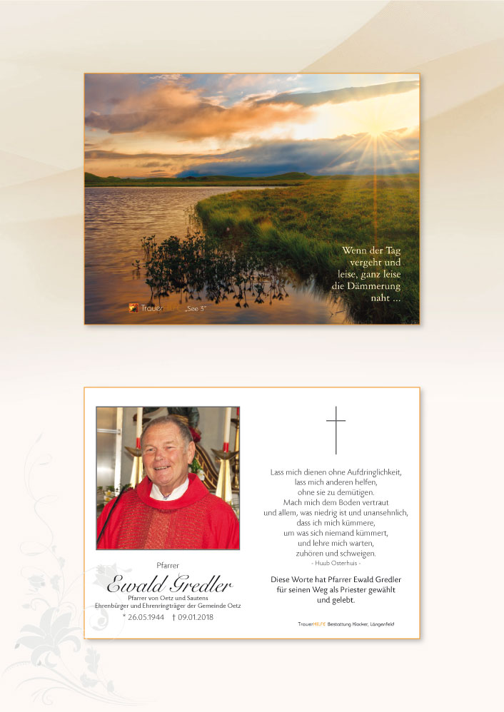 DU, der du uns Vorbild, Stütze, Unterstützer, Freund, Lebens- und Sterbebegleiter warst.
