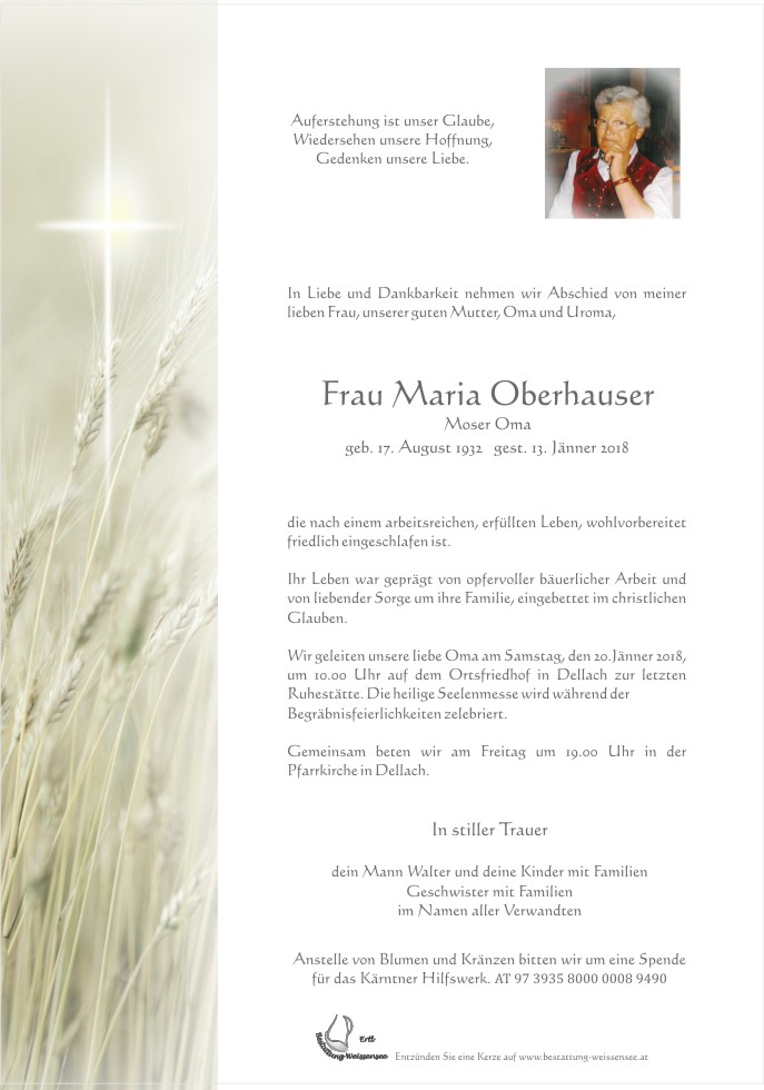 Neue Kerze für Maria Oberhauser entzünden.