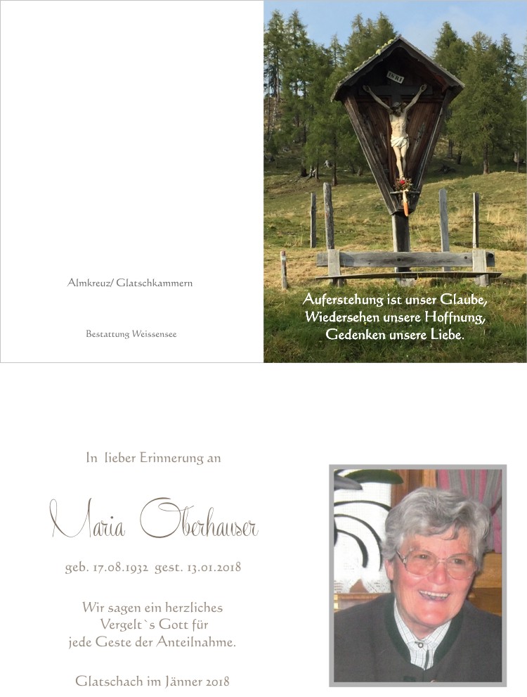 Bestattung wurde durchgeführt von: Markus Ertl Bestattung Weissensee Neusach 26 9762 - Weißensee Tel.: 04713 22 29 zum Bestatter