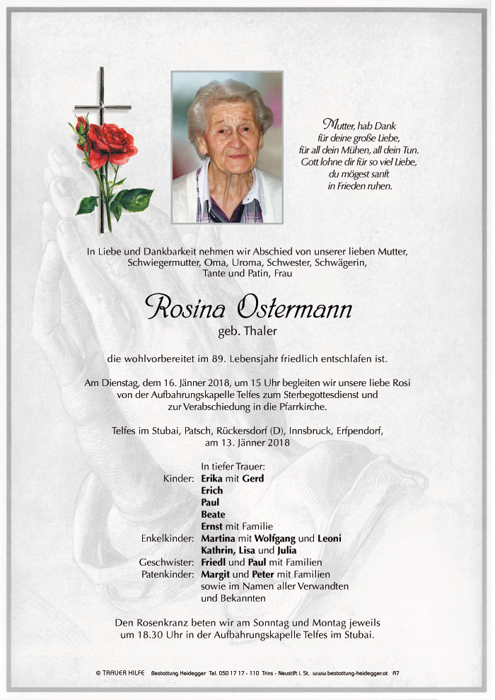 Wir tragen dich liebe Mama und Oma für immer in unseren Herzen und werden dich nie vergessen.
