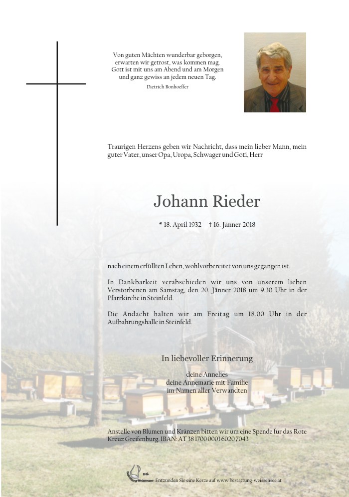 Aufrichtige Anteilnahme19.01.2018 21:40 - Fam. Kramer-Guggenberger