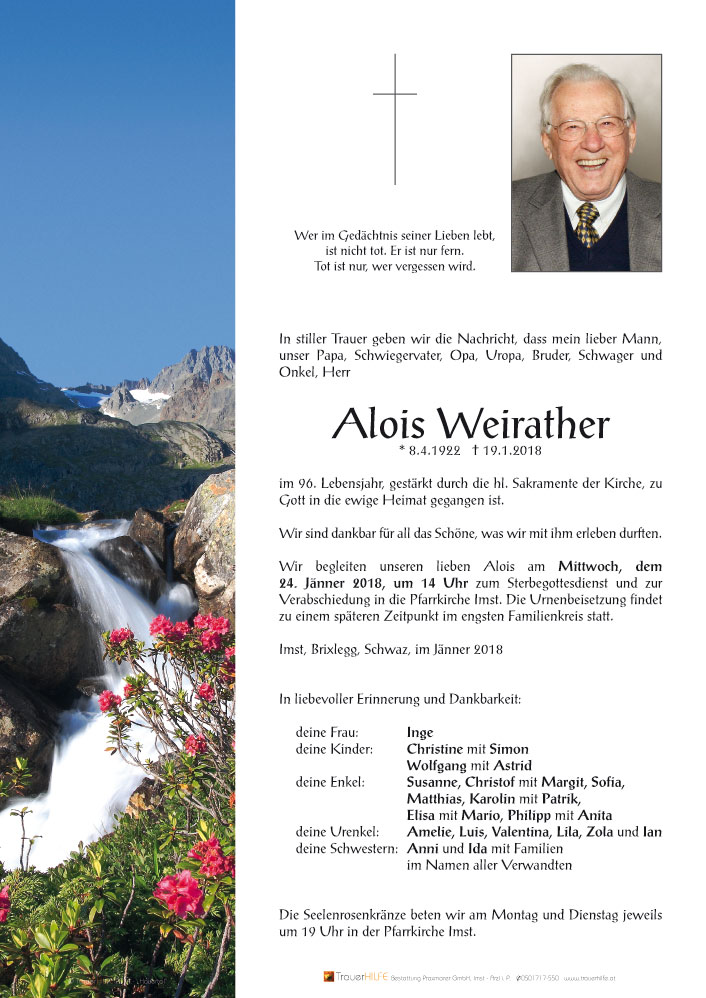 Möge Euch die Erinnerung an Alois begleiten, wie ein wärmender Sonnenstrahl!