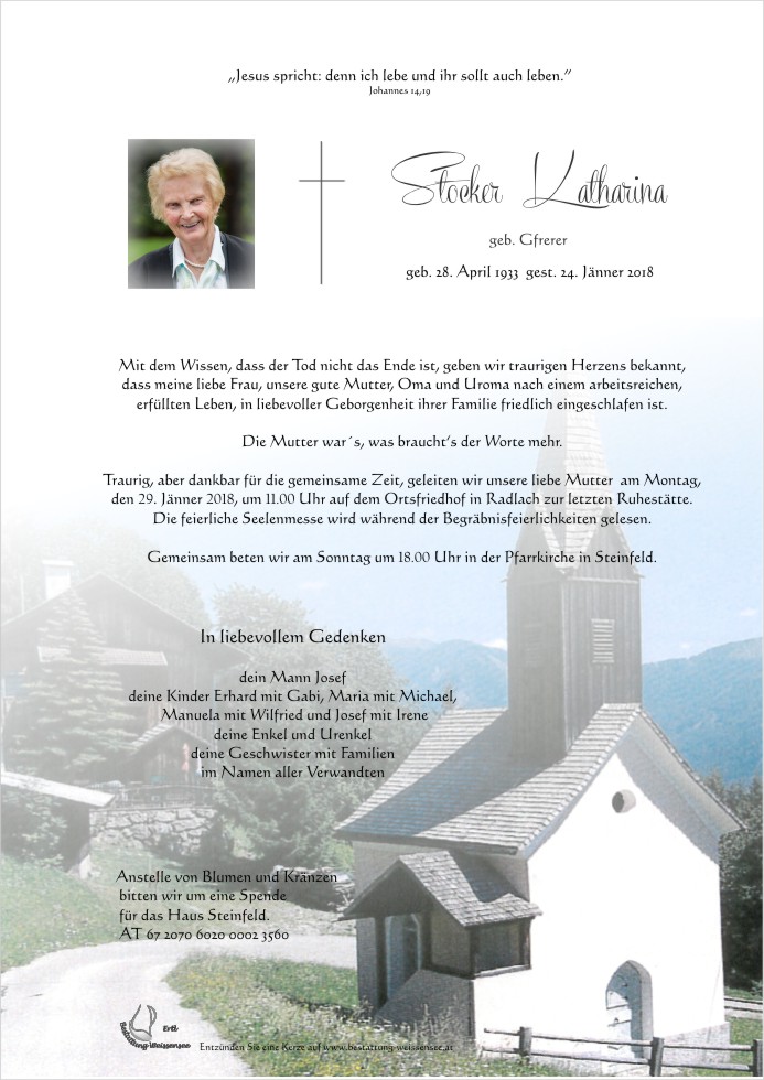 Friedhof Radlach, † 24.01.2018 (84 Jahre)