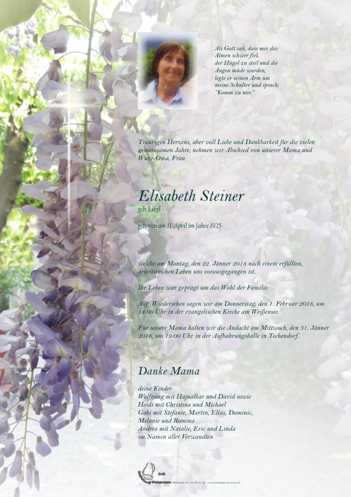Neue Kerze für Elisabeth Steiner entzünden.