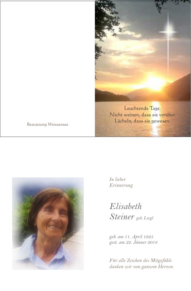 Bestattung wurde durchgeführt von: Markus Ertl Bestattung Weissensee Neusach 26 9762 - Weißensee Tel.: 04713 22 29 zum Bestatter
