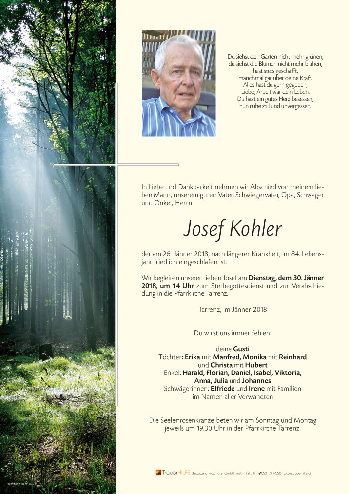 Neue Kerze für Josef Kohler entzünden.