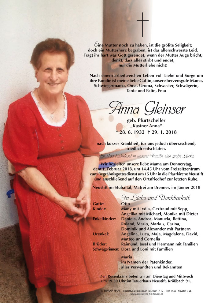 An die Trauer Fam. mein Herzliches Beileid31.01.2018 08:17 - Eine Verwante von Jenbach