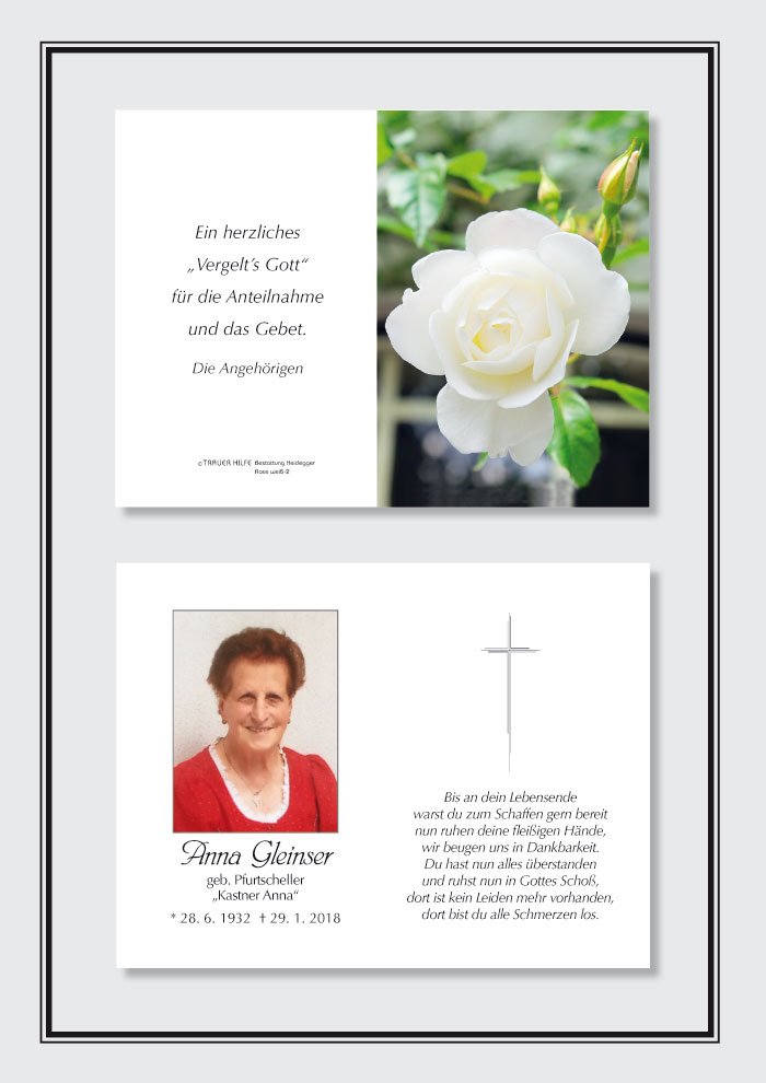 Liebe Mama nun sind es heute 2 jahre her dass du nicht mehr bei uns bist. Es vergeht kein Tag wo ich nicht auf dich und Tata denk. Es ist so schwer wenn man ins Elternhaus geht und alles ist leer. Aber mein großer Trost ist dass ihr nun mit euren lieben wieder beisammen seit.. Bleibt unsere Schutzengel ihr werdet immer einen besonderen Platz in unserem Herzen haben