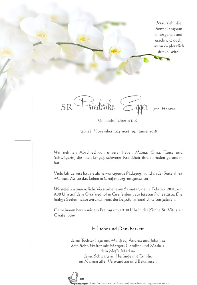Neue Kerze für Friederike Egger entzünden.